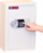 Skåpet har utrustats med ett batteridrivet elkodlås med möjlighet till 2 st personliga koder (4 st AA-batterier driver låset). Batterierna byts utifrån om man skulle missa att byta batterier innan de tar slut helt. Till kodlåset medföljer även en bruksanvisning på svenska.