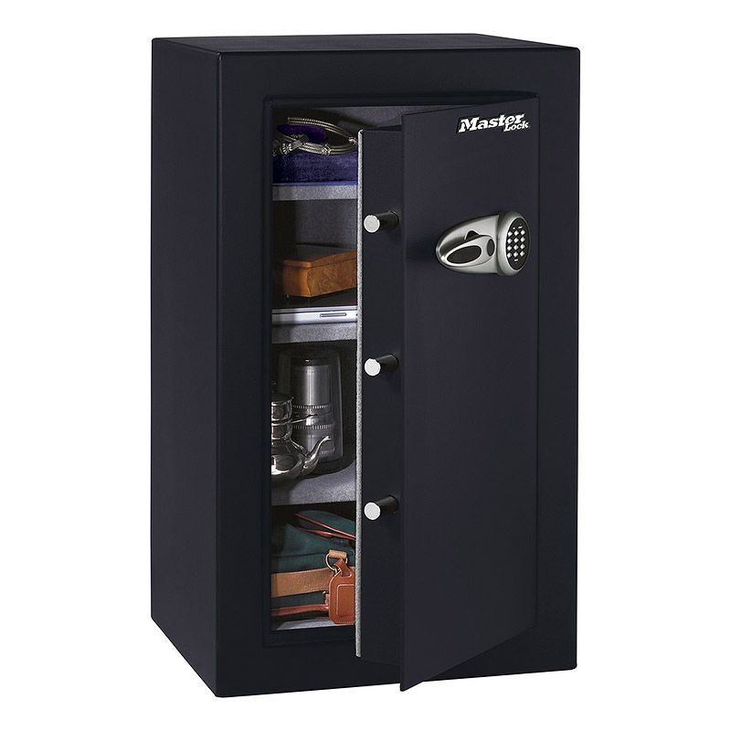 Kassaskåpet är utrustat med ett batteridrivet kodlås. Du ställer enkelt in din egen kod med hjälp av manualen. Till skåpet medföljer en nyckel för nödsituationer (t.ex. slut batteri i elkodlåset).